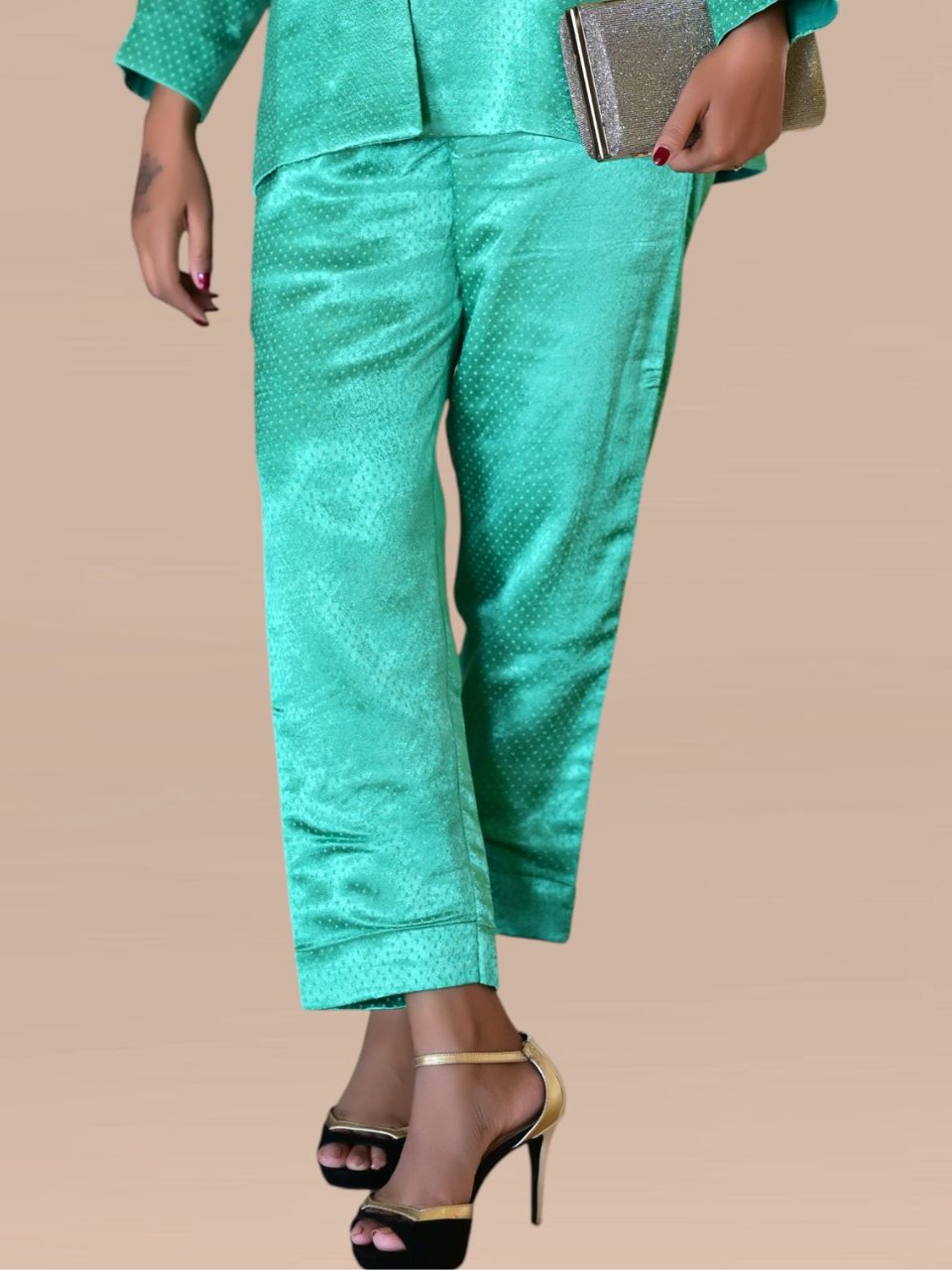 Where comfort meets quiet luxury. The Mashru Silk Pant is crafted from traditional mashru silk — a fabric known for its smooth, lustrous finish and beautifully structured drape. Designed for modern women who appreciate the richness of handcrafted textiles, these pants offer a perfect balance of heritage and contemporary styling. Soft on the skin, fluid in movement, and effortlessly versatile, they elevate any kurti, shirt, or festive top with understated sophistication.
