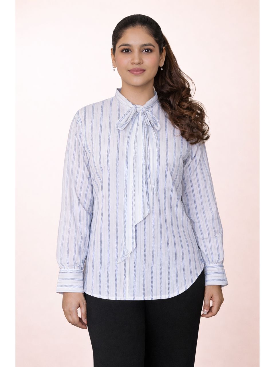 Fabric – Cotton with Herringbone Weave Neck – Bow Tie Neck Sleeves – Full Sleeves with Cuff Fit – Comfortable Tailored Fit