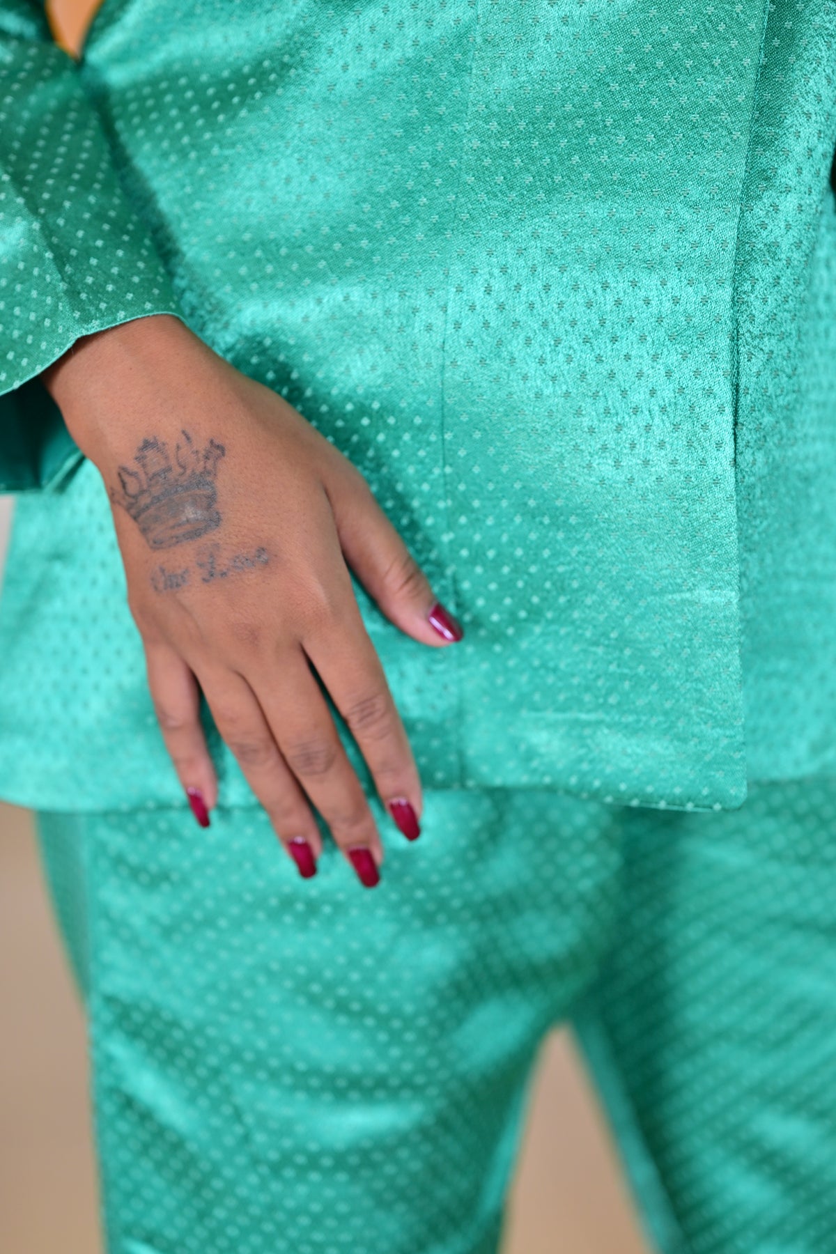 Why you’ll love it: – Silk fabric with a natural sheen and soft texture – Elegant blouse with refined tailoring and subtle details – Coordinated straight pants for a sleek, balanced look – Earthy rust-brown hue perfect for festive and formal occasions – A versatile ensemble that transitions seamlessly from day to evening